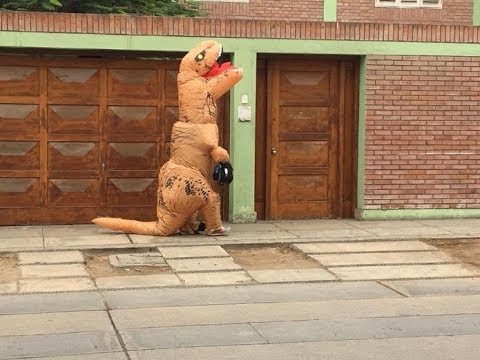 Un padre y su hijo protagonizaron una tierna historia por las calles de Lima, en Perú. Un vecino logró captar el momento en que padre e hijo caminaban juntos hacia el colegio con un disfraz de dinosaurio.